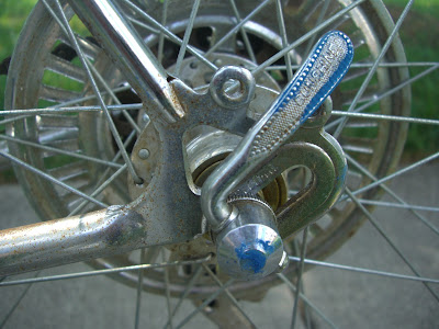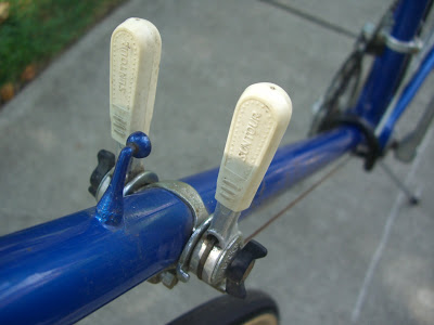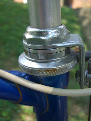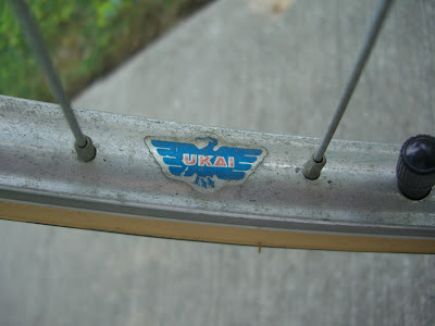 In general, there is much more alloy on this bike than I had assumed - the Nitto B115 bars and Ukai rims are alloy as well. Seatpost is steel, as are the rat trap pedals.