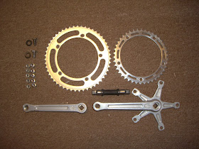 Today, the morning post brought a very nice Sugino Mighty crankset. These Campagnolo Nuovo Record inspired cranksets, with 144 BCD, graced many high end Japanese bikes in the 1970's. Later, for reasons unclear to Fuji Otaku, they became popular with the BMX crowd.