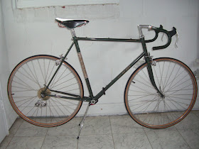 Found another seatpost for the 1984 Del Rey that works with the green Brooks, fits the seat tube and has flutes, which I've again painted black.