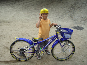 Here is my son learning how to ride.  These pictures are actually from late last summer shortly after buying a bicycle for my son.  Yeah, yeah, I know, no helmet, but this is Japan, just remember what it was like when you were a kid.