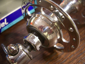 Beyond that, the bearings are sealed (not cartridge, though) and buttery smooth. I did have a low flange set of these as well, but they disappeared in some ebay frenzy a while back. They were definitely nice, but didn't quite have the panache of the high-flange version.