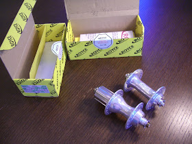 Prior to the commencement of The Phoenix Project, I posted an entry about hub selection criteria and shopping experience here, so I don't really need repeat some of this material. But today, the Royce Titan Venus hubs arrived in all their Britannic glory, quaintly packaged in authentic corrugated cardboard boxes: