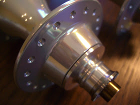 We've got to review some rims, spokes, tires, and quick releases and get them thrown together before we can mount anything on the frame, but we can close with a few parting shots of these lovely hubs: