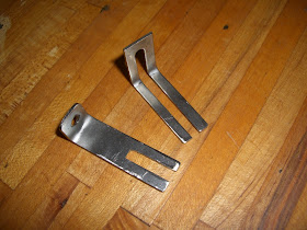 I had been keeping my eye on these mounting struts on a beat up old rack that has thus far escaped the trash man. This rack has led a hard life, as evidenced by the bent strut: