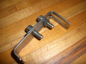 Initially, I rejected these as any sort of raw material because they were chromed steel. DIY mounts entail cutting, bending, drilling, etc., which would expose the rust prone steel substrate. However, not finding anything else promising around the shop, I returned to these and discovered, to my great joy, that they were stainless steel.