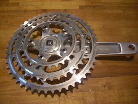 Having been a huge fan of the original Sugino Mighty Tour, I was initially pretty excited by this. But then I discovered that the 74mm granny is mounted on a triplizer middle chainring, which is epic fail in my estimation, particularly since no one seems to sell exactly this style of triplizer ring, much less in a variety of tooth counts.