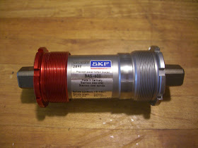 It turns out I already had a new 110mm SKF square taper bottom bracket in the parts locker that I was itching to try. These are still a bit of an unknown but are starting to make a great impression. They have roller bearings on the left side to counteract the cross product twisting customary to that side and they are giving a 10 year warranty on the units.
