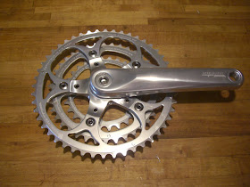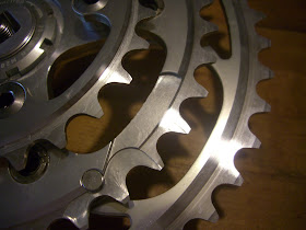 Enter Bilenky Cycles, who just happened to have these on sale and claimed to have silver 110/74 BCD spiders. For readers that are unfamiliar with the TA Carmina, the arms and spider are separate units and for a given set of arms, there are a range of spiders, from triples to singles in various BCDs that can be attached. Sort of the tinker-toy of cranksets.