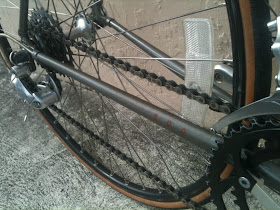 The specs on this bike, considering it retails for about $2k USD complete (take THAT, Riv and VO), are pretty swank - Reynolds 531 tubing, Shimano 105 derailleurs, cranks, brakes, and hubs, Nitto Pearl Stem & Lauterwasser bars, chromed fork, Brooks saddle, the list goes on.